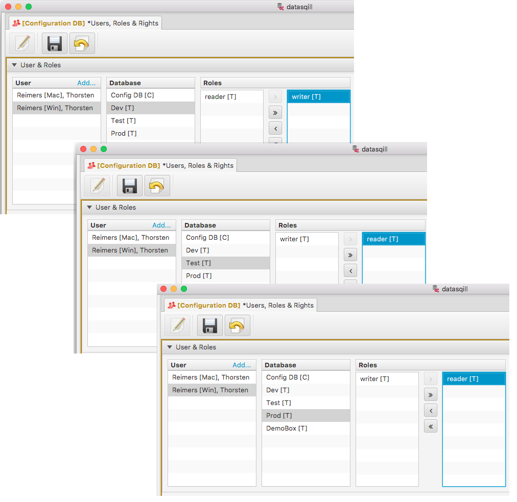 Damit kann man Rechte für Entwickler, Tester und Betriebspersonal steuern. Gibt es etwa drei datasqill Transformationsumgebungen