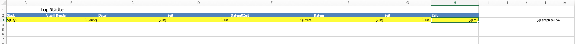 | ${TemplateRow} | - | Diese Variable legt fest, ab welcher Zeile die Daten aus der Query in das Excel eingesetzt werden | N |